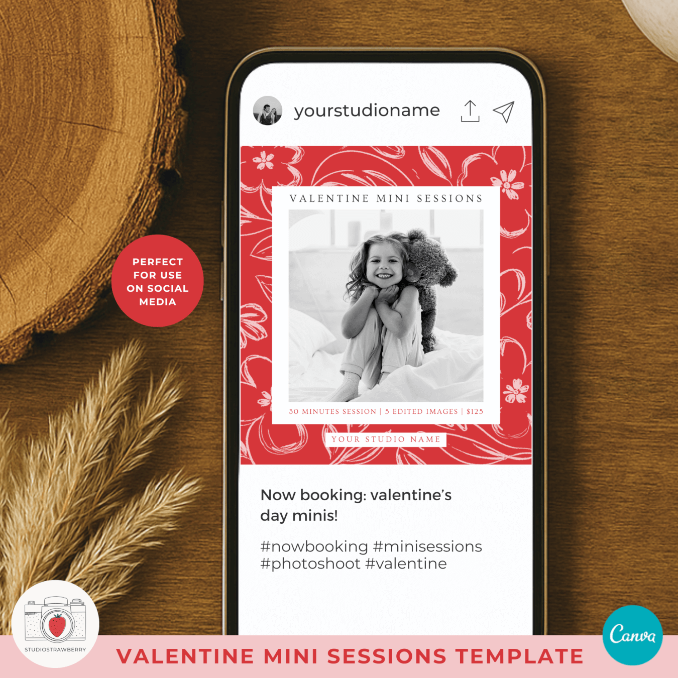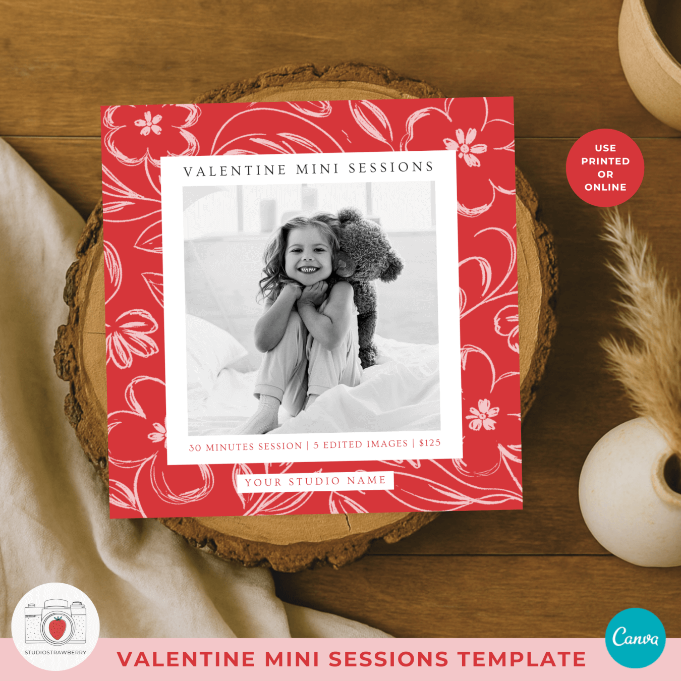 This Valentine mini sessions template for photographers is designed to help photography businesses promote their seasonal Valentine minis in a clear and professional way. The template is fully editable in Canva and works perfectly for photographers who want a Valentine mini sessions marketing template that can be used for both social media and print. With its square format, this Canva valentine mini session flyer is ideal for Instagram posts, Facebook promotions, and online marketing campaigns. Photographers can use this Valentine photography mini sessions promo to share session details, pricing information, or booking announcements without starting from scratch. The design also works as a valentine mini sessions printable flyer, making it easy to promote sessions locally. This template is a great fit for anyone looking for a photographer valentine minis instagram post, a valentine mini sessions social media template, or a polished valentine photo session promotion template. Created for ease of use, this photography mini sessions valentine canva design helps photographers save time while presenting their brand in a cohesive and professional way.