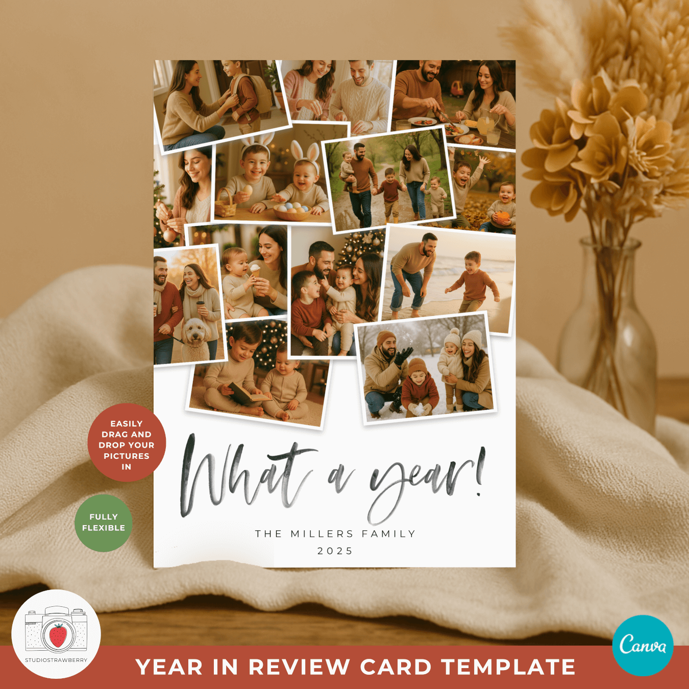 Create your personalized family highlights photo collage card today and make this year’s holiday message extra special with a unique “What a year!” design your loved ones will cherish.