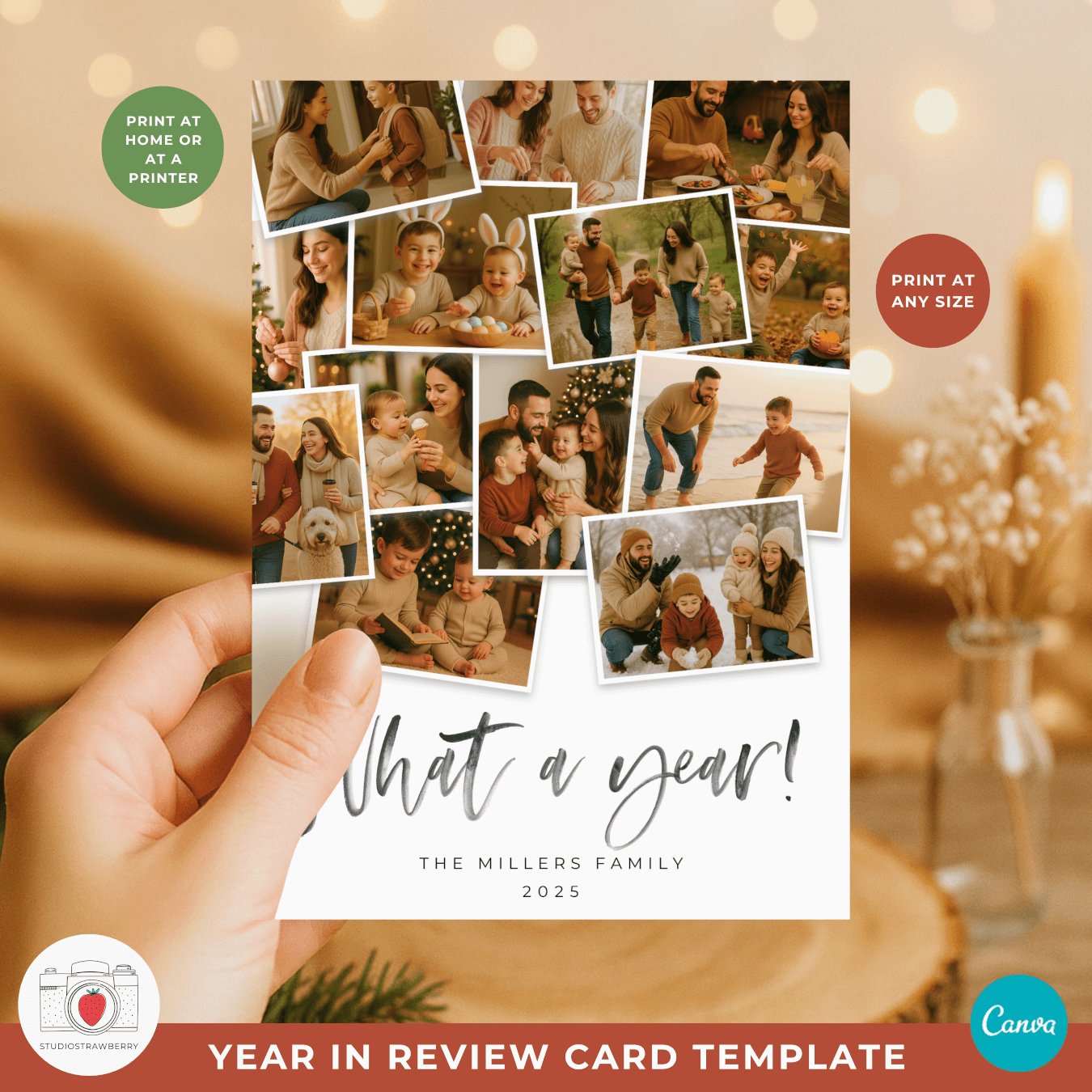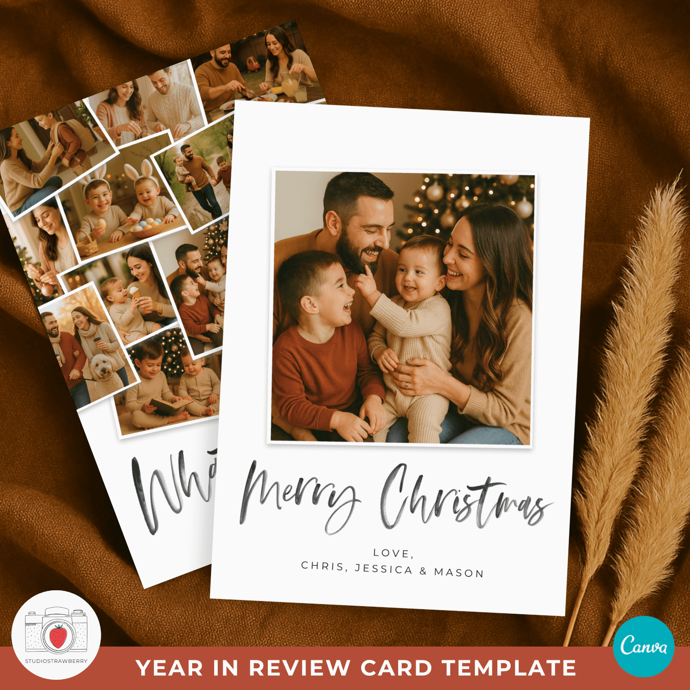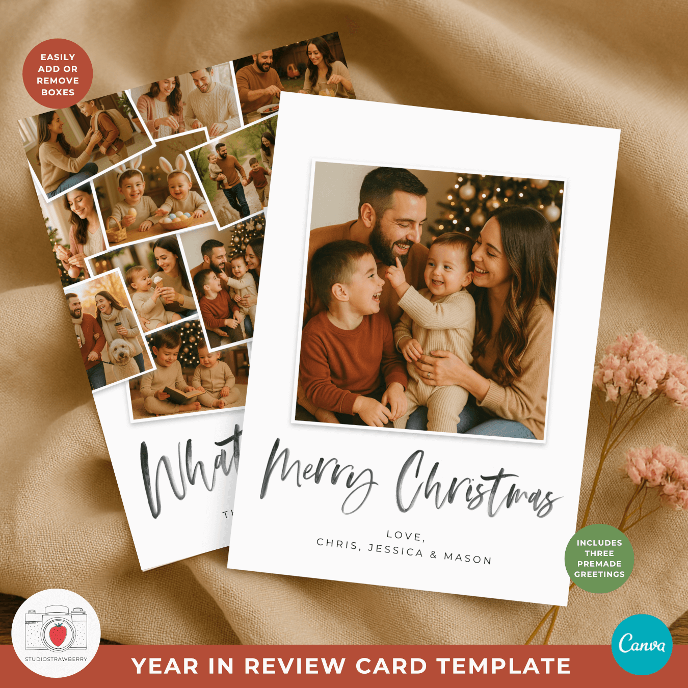 This modern family recap Christmas card is perfect for families who want to share their story with heart. Capture your favorite photos from vacations, birthdays, or everyday life and turn them into a keepsake that celebrates the moments that mattered most.
